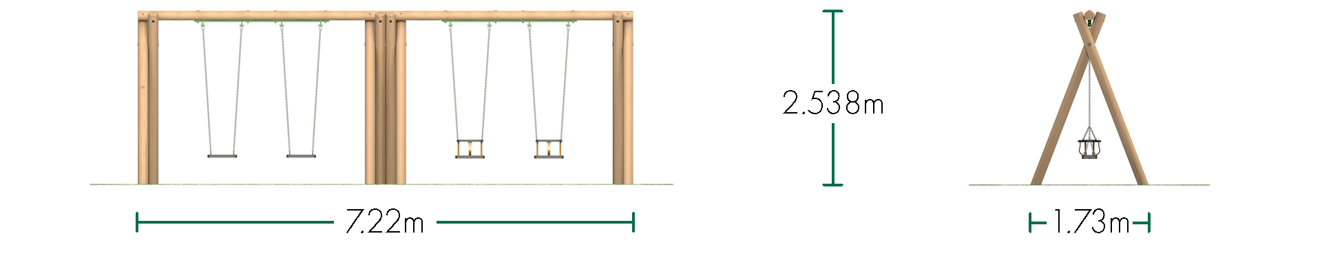 Timber Swings 2.4m 2 Flat Seats, 1 Group Seat