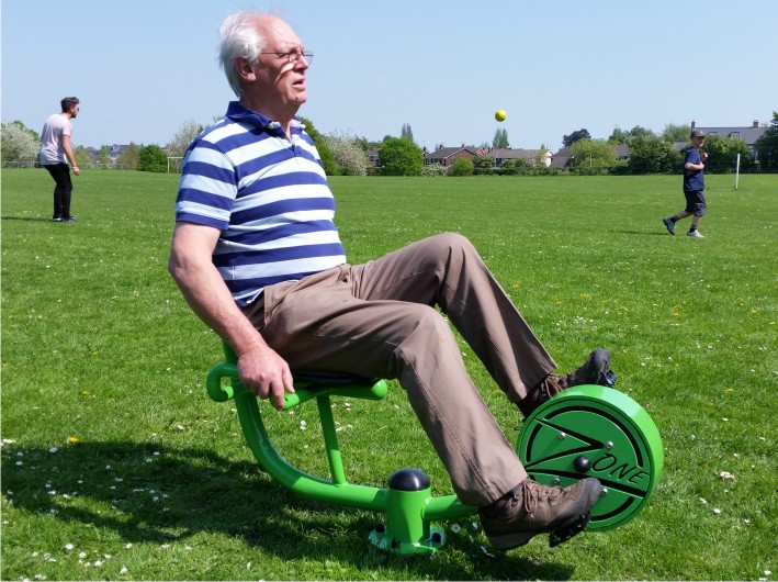 A recumbent cycle that allows the user to build and tone their legs.